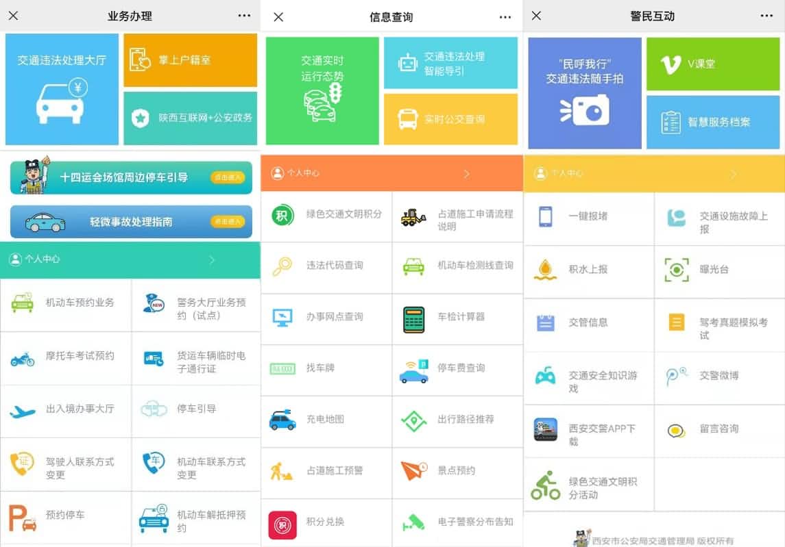 西安交警整合打造公众服务矩阵,借助“西安交警”微信公众号、订阅号、12123服务平台等,先后上线随手拍、微信挪车、无邪车预约、无邪车六年免检、智慧提醒等81项便民服务,线上累计服务一亿多人次。让惠民服务更好地触达公众,让数据替群众跑路。