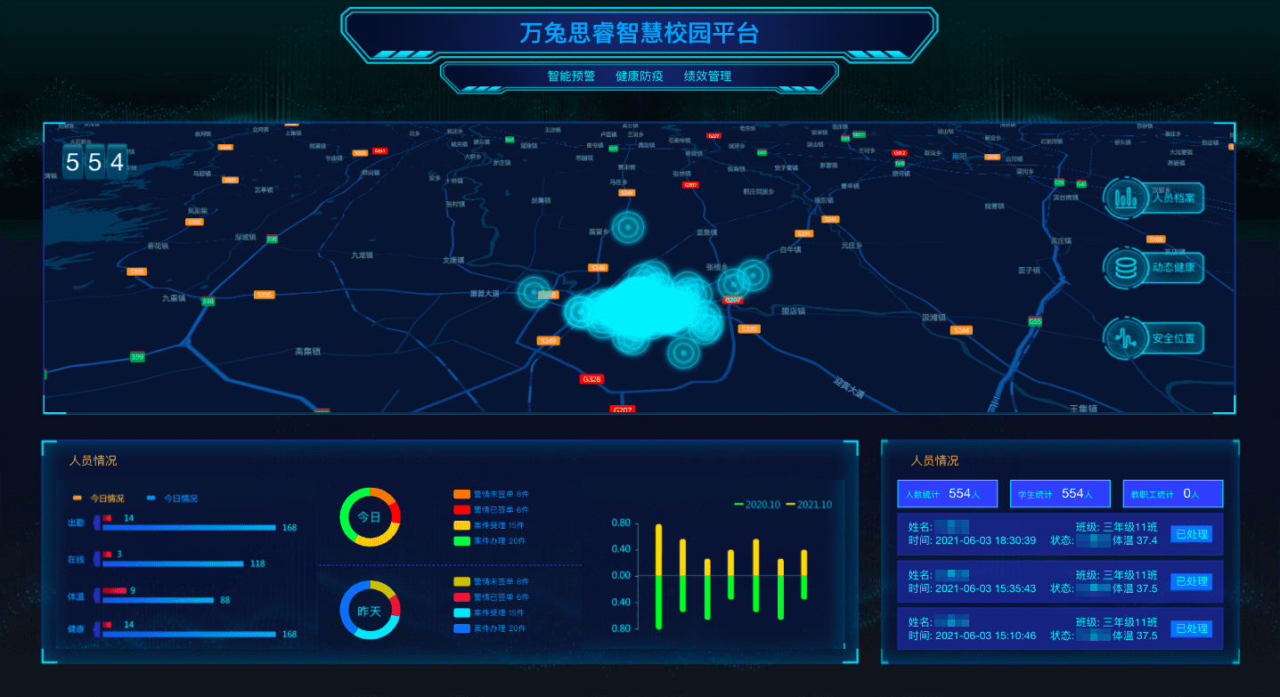 У԰¿µ½¡¹ÜÀíÆ½Ì¨Æ¾Ö¤Ð£Ô°ÖÇÄÜÖÕ¶Ë¡¢´«¸ÐÆ÷Êý¾Ý¶¨ÖÆ»¯Õ¹Ê¾¸÷¹¦Ð§Ä£¿éµÄʵʱÔËÐÐÊý¾Ý£¬¿ÉÊÓ»¯¼à²âѧÉúÇå¾²¡¢ÉúÃüÌåÕ÷¡¢Ô˶¯¿µ½¡¡¢·ÀÒß²âΣ¬×Ô¶¯ÌìÉúѧÉú¿¼ÇÚ¡¢ÌåΡ¢ÐÄÂÊ¡¢¿¨Â·ÀïµÈ¿µ½¡±¨¸æ ¡£ÒÔ¡°ÊÂǰԤ·À¡¢ÊÂÖпØÖÆ¡¢Êºó´¦Öóͷ£¡±µÄÇå¾²±Õ»·¹ÜÀíΪÉè¼ÆÀíÄÈùÜÀíÕßʵʱ¡¢ÇáËÉÕÆÎÕѧÉúÇéÐÎ ¡£