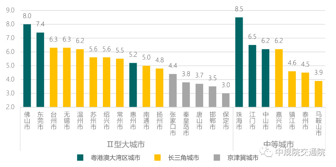 ´Ó¶¼»áȺõè¾¶ÍøÃܶÈÖ¸±êÀ´¿´£¬·ºÆð¡°ÔÁ¸Û°Ä´óÍåÇø>³¤Èý½Ç>¾©½ò¼½¡±µÄÏÔ×ÅÌØÕ÷¡£È¥³ýֱϽÊС¢Ê¡»á¡¢ÍýÏëµ¥ÁÐÊеȽ¹µã´ó¶¼»áÓ°Ï죬¶¼»áȺÄÚ±¾´ÎÐÂÔö¼à²â¶¼»áÖ÷ҪΪ¢òÐÍ´ó¶¼»áºÍÖеȶ¼»á£¬ÔÚ´ËÁ½Àà¹æÄ£¶¼»áÖУ¬ÔÁ¸Û°Ä´óÍåÇø¶¼»áõè¾¶ÍøÃܶÈÖ¸±ê¾ù´¦Óڽϸßˮƽ£¬Æä´ÎΪ³¤Èý½Ç¶¼»á£¬¾©½ò¼½¶¼»áõè¾¶ÍøÃÜ¶ÈÆÕ±éÆ«µÍ£¬ËùÓеÍÓÚ4.5ǧÃ×/ƽ·½Ç§Ãס£¾Í¶¼»áõè¾¶ÍøÃܶȶøÑÔ£¬Èý´óÖ÷Òª¶¼»áȺÖУ¬ÔÁ¸Û°Ä´óÍåÇøÌåÏÖÁ˶¼»á¸ßÖÊÁ¿Éú³¤µÄÒªÇ󣬳¤Èý½ÇºÍ¾©½ò¼½»®·ÖÔÚ×·¸ÏÌì϶¼»áƽ¾ùˮƽºÍ±±·½¶¼»áƽ¾ùˮƽµÄõè¾¶ÉÏÈÔÐèÂí²»Í£Ìã¡£