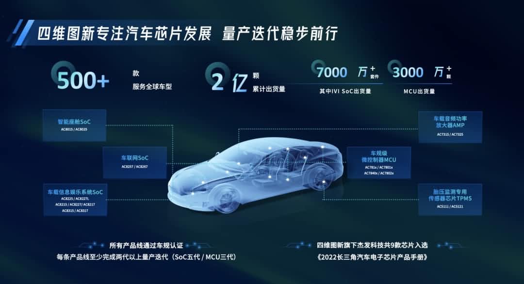 今年 ,威廉希尔williamhill官方网站智芯四大产品线9款自主研发的芯片入选《2022长三角汽车电子芯片产品手册》 ,9款芯片被收录至《汽车电子芯片立异产品目录》 ,车规级MCU AC781x芯片荣获2022全球数字经济大会“数字经济工业立异效果” ,智能座舱中控处置惩罚器芯片AC8015入围“汽车电子优异立异手艺与产品应用效果”。威廉希尔williamhill官方网站智芯服务全球500+款车型 ,累计出货量凌驾2亿颗 ,其中IVI SoC出货量凌驾7000万套件 ,MCU出货量凌驾3000万颗。