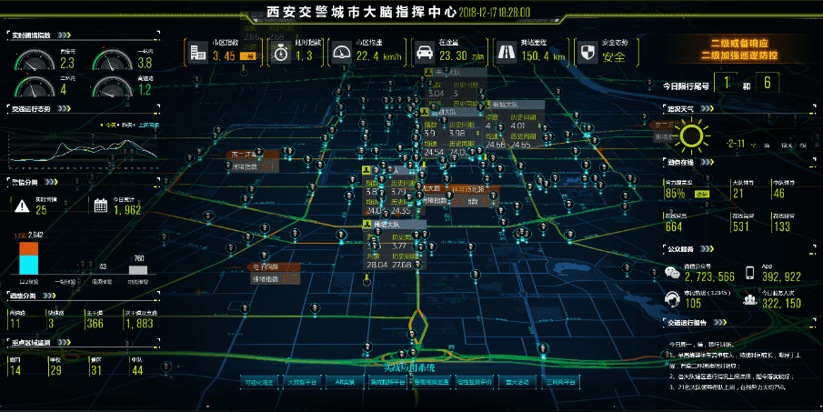 Î÷°²½»¾¯¶¼»á´óÄÔÖ¸»ÓÖÐÐÄ¿ÉÊÓÒ»Ì廯ָ»Ó´óÆÁ£¬¿ÉʵÏÖ¶ÔÎ÷°²Êн»Í¨È«ÒªËظÅÀÀ£¬°üÀ¨¶¼»áõ辶ͨÐÐ״̬¡¢ÖÖÖÖ½»Í¨ÊÂÎñ¡¢È«Êо¯Á¦ÂþÑÜ¡¢Â·ÍøÂþÑÜ¡¢Öصãõè¾¶ÇøÓòµÈÐÅϢʵʱ×ۺϷºÆð¡£ÏÖÒÑʵÏÖÒ»ÆÁÈ«Óò¸ÐÖª¡¢Ò»ÆÁ×ۺϼà²â¡¢Ò»ÆÁͳ³ï¾öÒé¡¢Ò»ÆÁ¿ÆÑ§ÆÀ¼Û¡¢Ò»ÆÁ¶à²¿·ÖЭ×÷¡£Í¨¹ý½»Í¨Ö¸Êý¡¢ÑÓʱָÊý¡¢ÊÐÇø¾ùËÙ¡¢ÔÚ;Á¿¡¢Óµ¶ÂÀï³Ì¡¢½»Í¨Çå¾²Ì¬ÊÆ¡¢¾¯Á¦ÁýÕÖÂʵȶ¯Ì¬Ó뾲̬ÏàÍŽáµÄ½»Í¨ÔËÐÐ״̬ÆÀ¹ÀÖ¸±ê£¬ÇÐÂö¹Å¶¼½»Í¨£¬ÊµÊ±·´Ó¦½»Í¨¿µ½¡×´Ì¬¡£