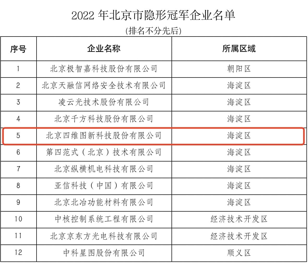 近期 ,北京市经济和信息化局会同市工商联组织开展了“2022年北京市隐形冠军企业”的征集和认定事情 ,威廉希尔williamhill官方网站通过严酷评审与选拔 ,入选榜单。