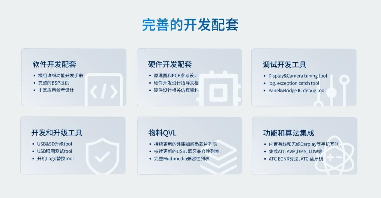AC8257车联网模组可提供完善的开发配套服务,包括软硬件开发配套、调试开发工具、开发和升级工具、物料QVL、功效和算法集成等,内置生态集成度高 。