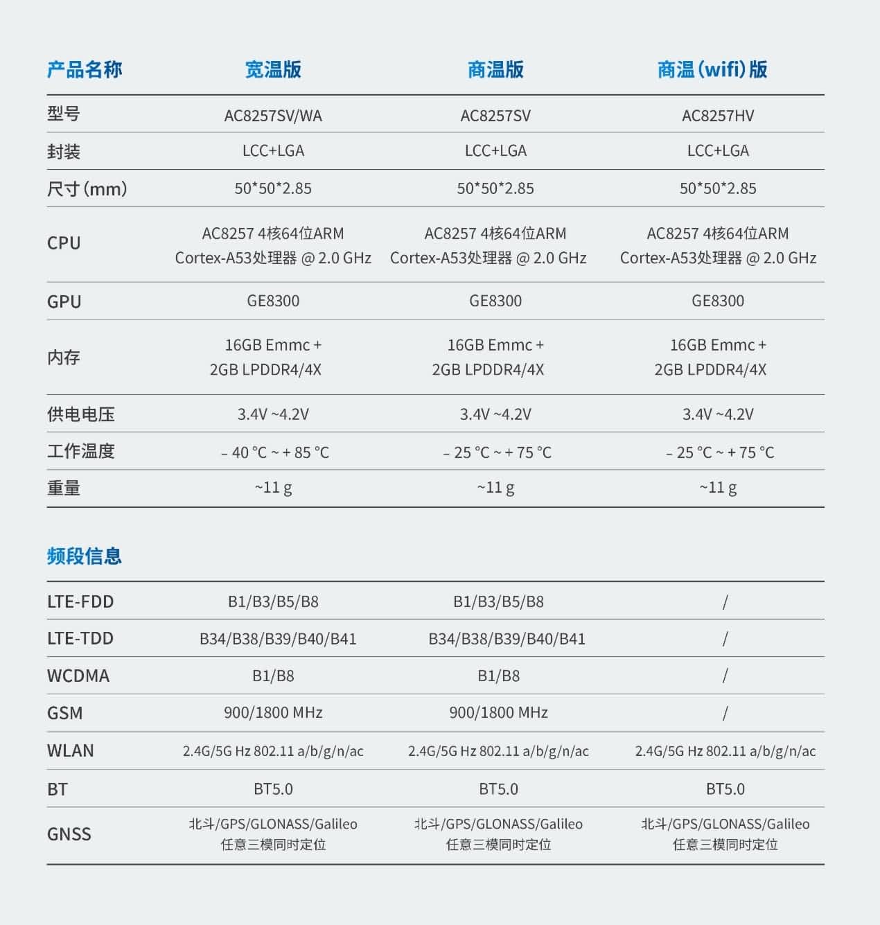 图:AC8257车联网模组参数