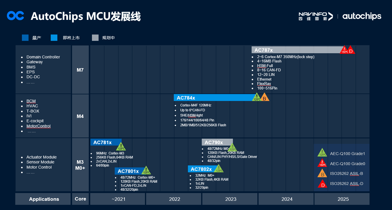 作为国产车规MCU领航者,杰发科技MCU产品线从基于M0+和M3内核的AC780x系列和AC781x系列主打小节点执行层角色,到基于M4F内核的AC784x系列作为中心力量,再到未来基于M7内核的AC787x系列拥有高算力大Pin角主打域控制器角色,形成了汽车MCU领域全笼罩。李清庐体现,杰发科技希望依附久远的产品战略妄想和富厚多样的MCU产品线为中国汽车“新四化”生长孝顺一份力量。