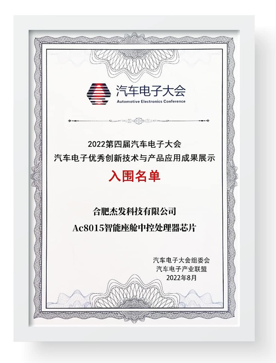 本次大会,杰发科技首颗智能座舱中控处置惩罚器芯片AC8015入围“汽车电子优异立异手艺与产品应用效果奖”,以一定AC8015智能座舱芯片领先的手艺和普遍的应用 。AC8015是杰发科技首款自主研发的车规级座舱SoC芯片,可用于开发一芯多屏入门级座舱、车载信息娱乐系统、Display Audio、3D液晶仪表等座舱域产品 。AC8015已与海内外十余家系统供应商合作,累计出货量数十万颗,量产车型十余款 。