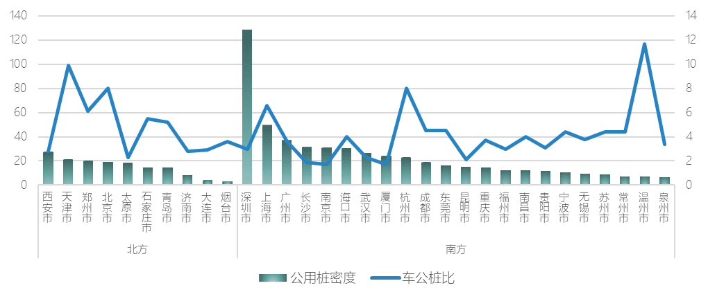 32×ù¶¼»á¹«ÓÃ×®µÄƽ¾ùÃܶÈÁè¼Ý21̨/ƽ·½¹«Àï £¬ÆäÖÐÉîÛÚ¡¢ÉϺ£¡¢¹ãÖÝ¡¢³¤É³¡¢ÄϾ©ºÍº£¿ÚµÈ¶¼»áµÄ¹«ÓÃ×®ÃܶÈÁè¼Ý30̨/ƽ·½¹«Àï ¡£ÄÏ·½¶¼»áµÄƽ¾ù¹«ÓÃ×®ÃܶÈΪ24.3̨/ƽ·½¹«Àï £¬¸ßÓÚ±±·½¶¼»áµÄ15.2̨/ƽ·½¹«Àï ¡£Í¬Ê± £¬ÄÏ·½¶¼»á˽È˳ËÓóµÁ¾µÄƽ¾ù³µ¹«×®±ÈΪ4.1 £¬µÍÓÚ±±·½¶¼»áµÄ4.9 ¡£¹«ÓÃ×®ÃܶÈÅÅÃûǰ6λ¡¢³µ¹«×®±ÈÅÅÃûǰ5λµÄ¾ùÊÇÄÏ·½¶¼»á ¡£