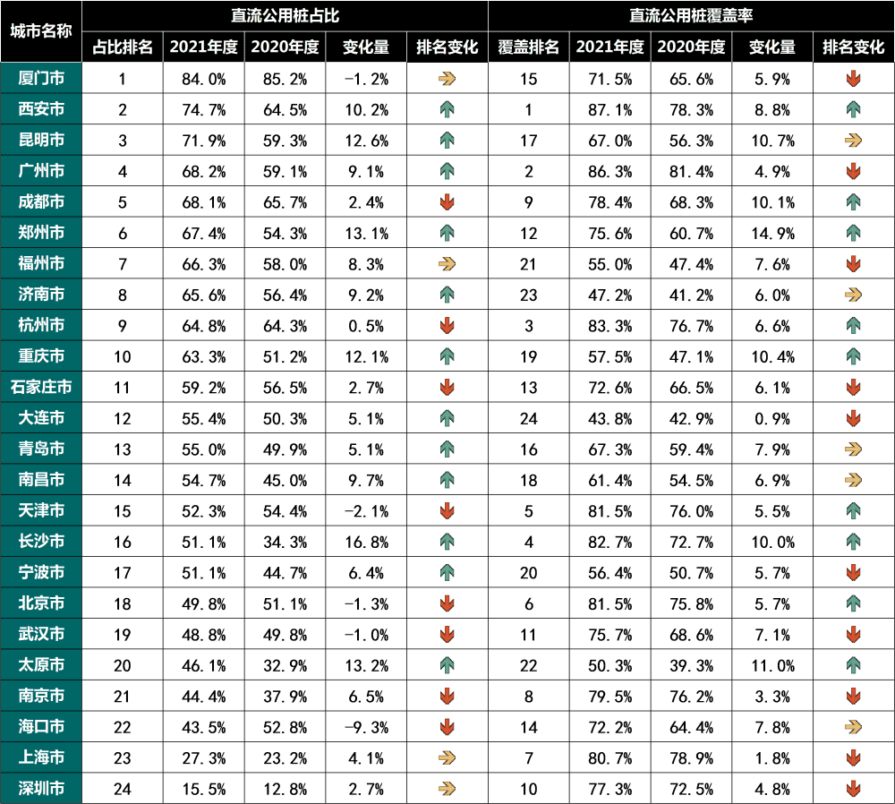 ÔÚ32×ù¶¼»áµÄËùÓй«×®ÖÐ £¬Ö±Á÷¹«ÓÃ×®Õ¼±È¾ùֵԼΪ57.3% £¬ÆäÖÐ £¬23×ù¶¼»áµÄÖ±Á÷¹«ÓÃ×®Õ¼±ÈÁè¼Ý50% £¬Ö±Á÷¿ì³ä·þÎñÔÚ´ó¶¼¶¼»áÖÐÐijÇÇøµÄ¹«ÓÃ×®ÖÐÒѾ­Õ¼µ½Ö÷Ìå ¡£ÓëËùÓй«×®Ïà±È £¬24×ù¶¼»áµÄÖ±Á÷¹«ÓÃ×®ÁýÕÖÂÊÆ½¾ùÔöÌíÔ¼7.1% £¬ÆäÖÐ23×ù¶¼»áµÄÖ±Á÷¹«ÓÃ×®ÁýÕÖÂÊÔö·ù¸ßÓÚ¹«ÓÃ×®ÕûÌåÁýÕÖÂÊÔö·ù £¬Ö£ÖÝ¡¢Ì«Ô­¡¢À¥Ã÷¡¢ÖØÇì¡¢³É¶¼¡¢³¤É³µÈ¶¼»áÖ±Á÷¹«ÓÃ×®ÁýÕÖÂʽÏ2020Äê¶ÈÔöÌíÁè¼Ý10% ¡£
